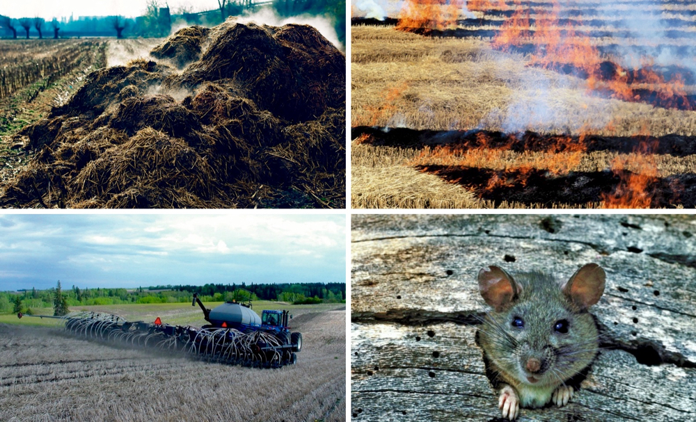 Diagnosis: There is a lot less straw burning now than in the past but it does still take place. What really happens is the carbon in the straw goes up in flames, along with about 30 pounds of nitrogen and seven pounds of sulphur from a 60-bushel crop of wheat straw or an 80-bushel crop of barley straw. In addition, there is no tie-up of the soil nitrogen by the two-or-so tons of straw. If left in place and worked under in the spring, the straw would release an additional 50 pounds of nitrogen as well as a few pounds of soil sulphur in the rotting and decomposition process. There might be some disease control with burning, but foliar disease outbreaks are more dependent on weather in any given year.