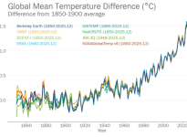 • The past three years from 2023 to 2025, marked the three warmest years in all eight datasets, while the past 11 years, 2015-2025, are the 11 warmest years in all eight datasets.