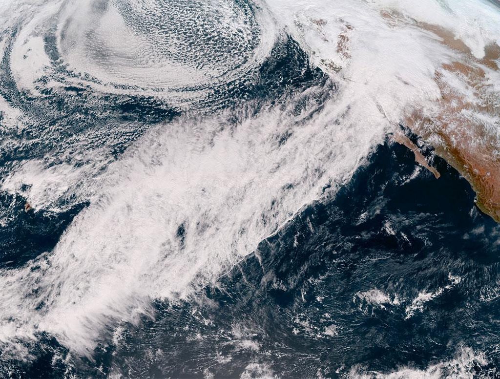 An atmospheric river carries moisture in a narrow, fast-moving band over the Pacific Ocean. A new equation by UChicago researchers explains the underlying processes behind these rivers and could help enhance future extreme weather predictions. Credit: NOAA
