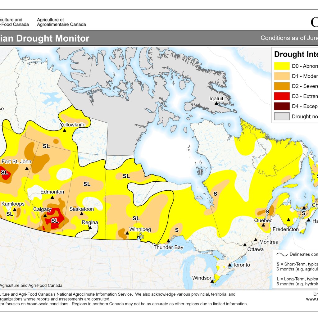 One positive in the report was no region of Canada was in an exceptional drought in June.