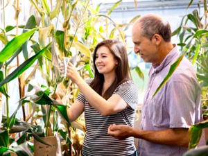 <p>Coralie Salesse-Smith (l) and David Stern have developed a type of corn that recovers more quickly after a cold spell. Photo: Jason Koski/Brand Communications</p>