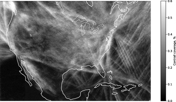Engineers at the Massachusetts Institute of Technology (MIT) have mapped the contrails that were generated over the United States in 2020, and compared the results to pre-pandemic years. They found that on any given day in 2018, and again in 2019, contrails covered a total area equal to Massachusetts and Connecticut combined. In 2020, this contrail coverage shrank by about 20 per cent, mirroring a similar drop in U.S. flights.