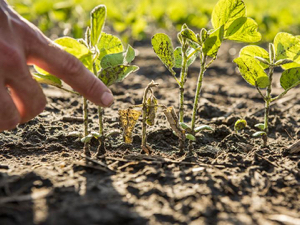 <p>During the growing season in soybean fields, there is attrition – or unexplained plant death – each year. This is important to account for when calculating seeding rate. Photo: Corteva Agriscience</p>