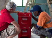 New power cube technology on display in Vanuatu. The cubes are charged with electricity using solar rays. (Photo credit: UNDP)